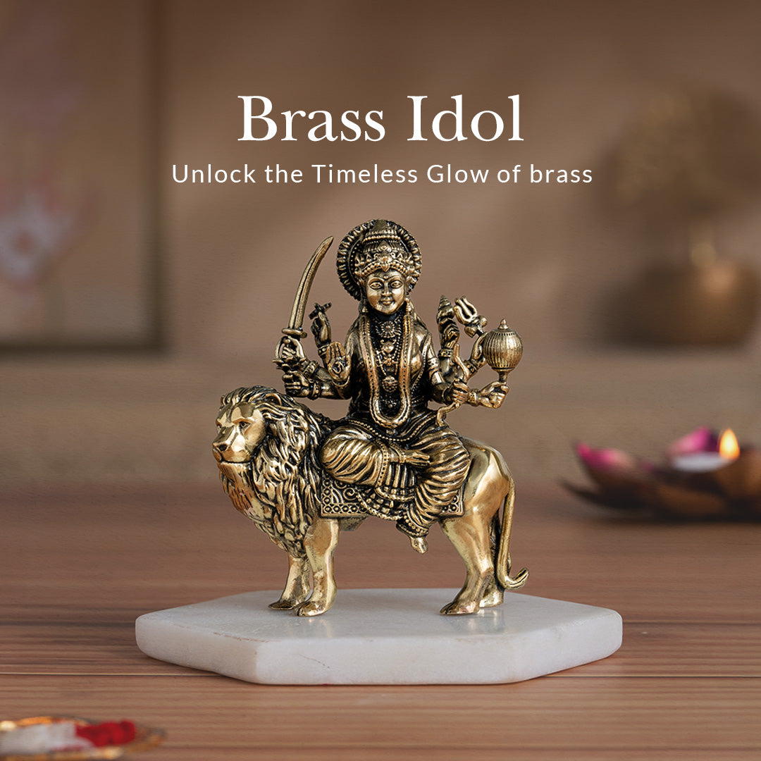 Exquisite White & Gold Sherawali Mata Murti (3.5 inch)