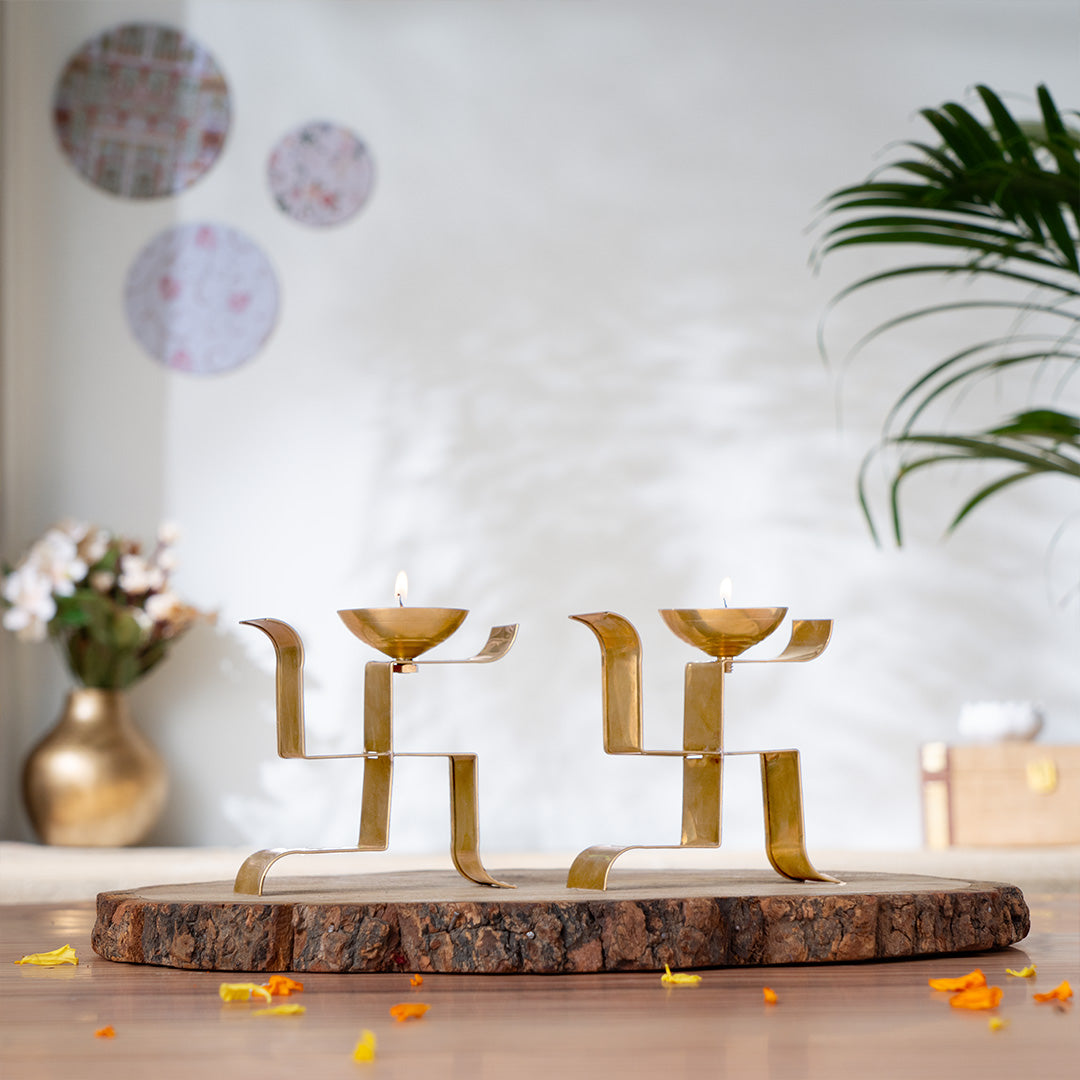 Brass Vertical Swastika Symbol Diyas (Set of 2)