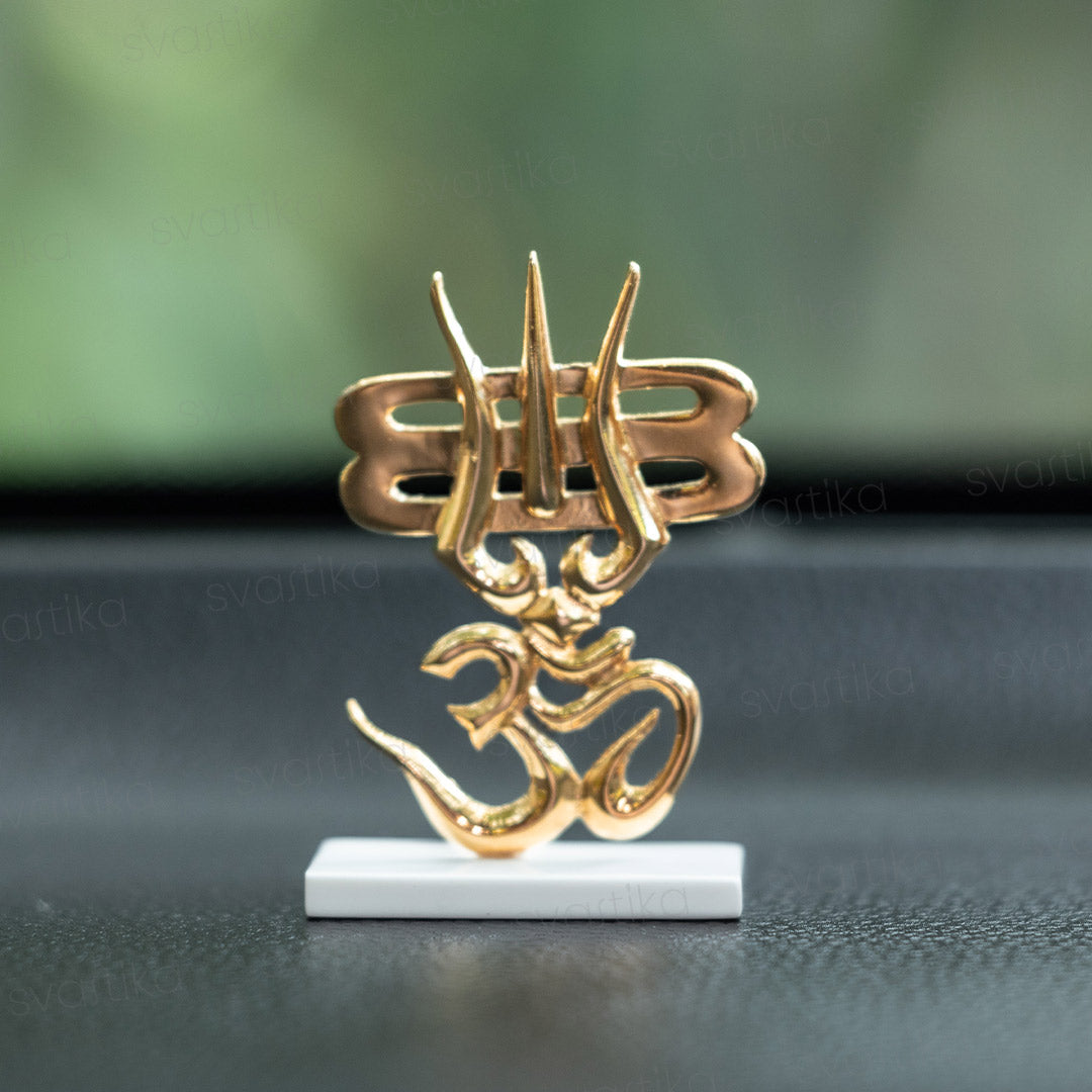 Trishul & OM for Car Dashboard - Gold Plated (2.5 Inch)
