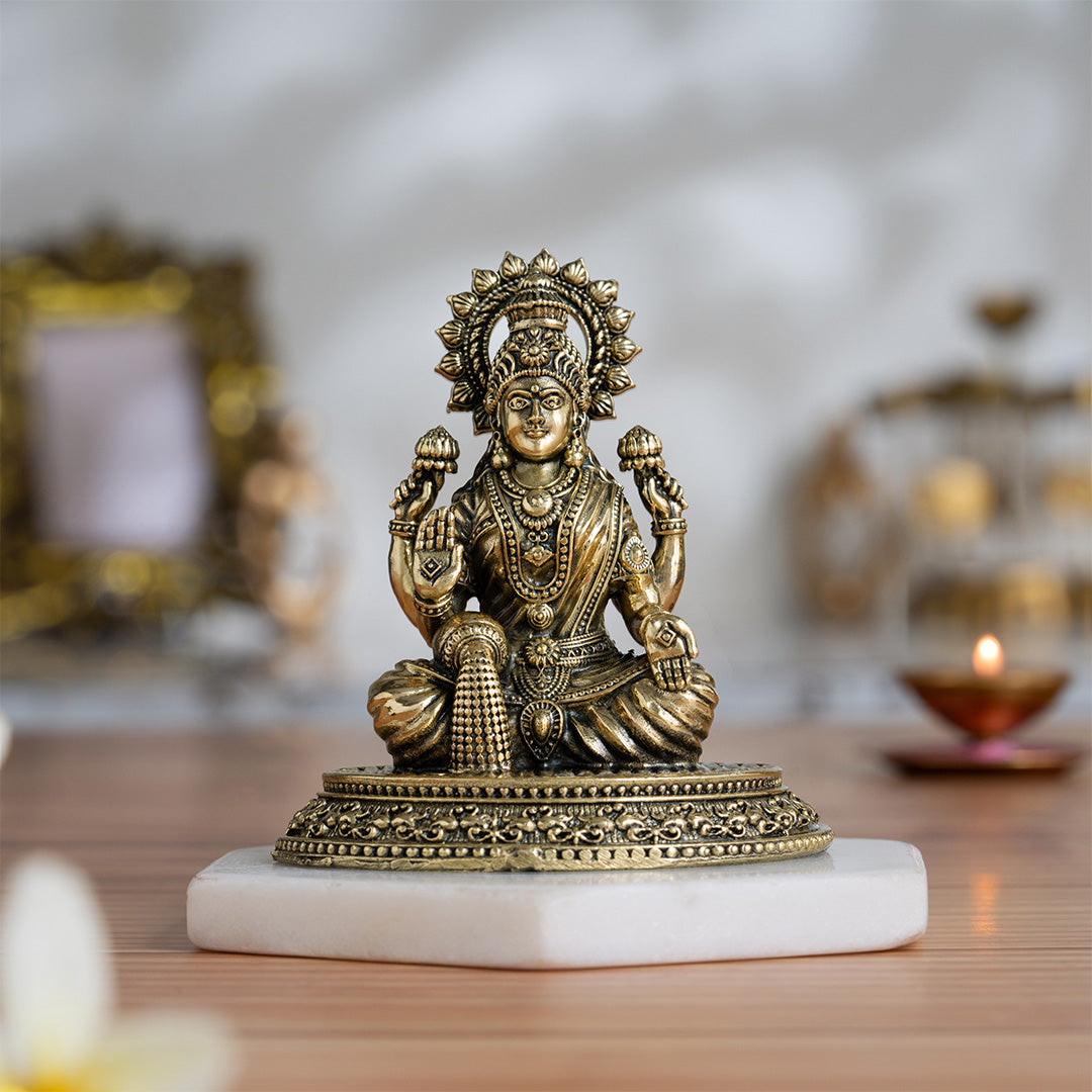 Brass 4 Armed Lakshmi Idol (4 Inch)