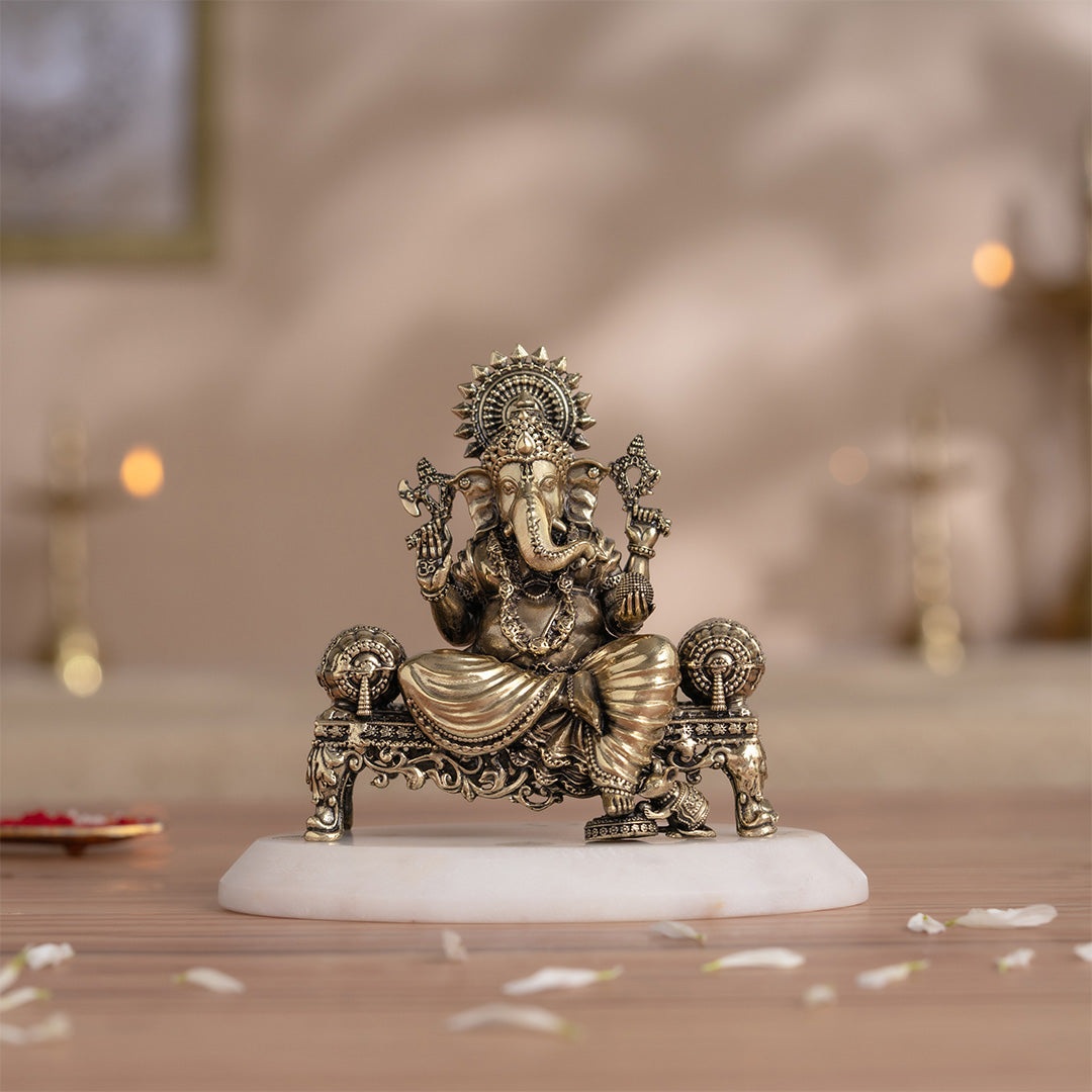 Brass Ganesh Idol Virajman On Sinhasan (4 Inch)