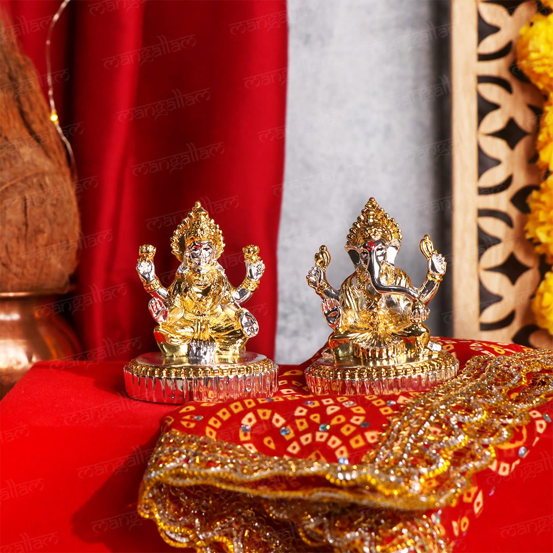 Ganesh Lakshmi Murti Set - Gold & Silver Plated