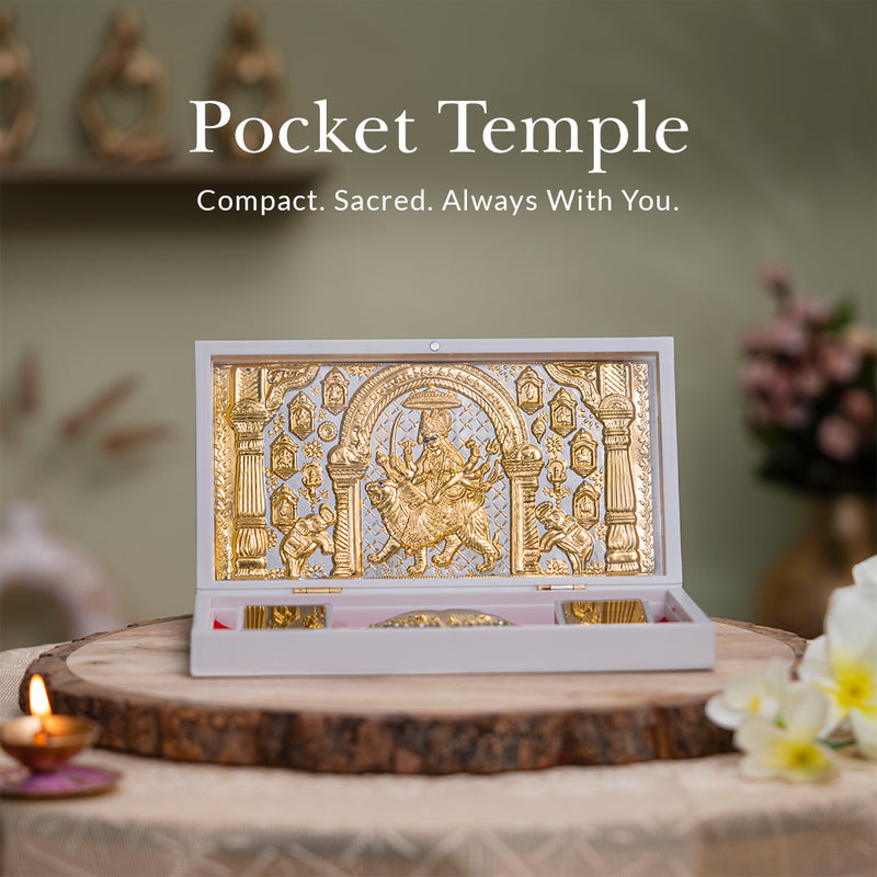 Exquisite White & Gold Sherawali Mata Murti (3.5 inch)