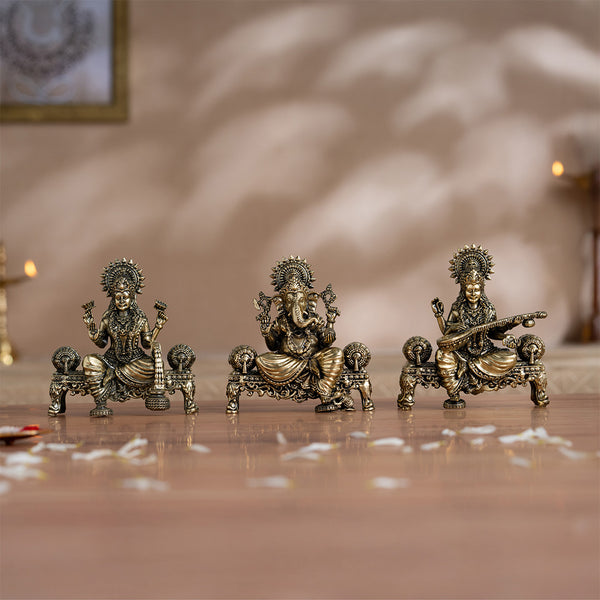 Brass Laxmi Ganesh Saraswati Murti Set (4 Inch)