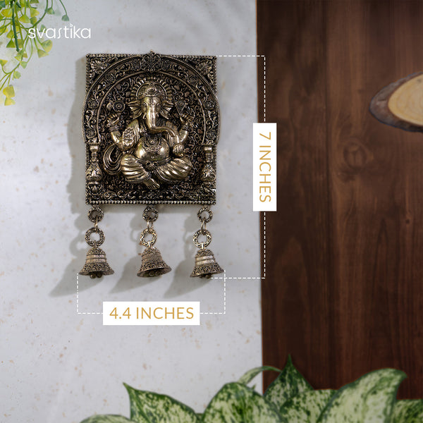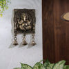 Brass Ganesh Square Frame Wall Hanging with Bells