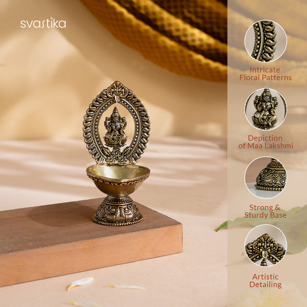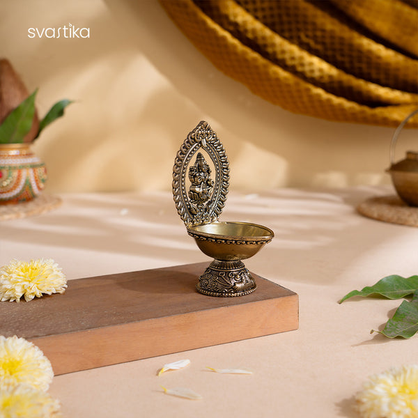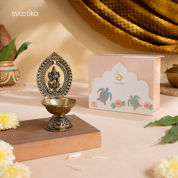 Goddess Lakshmi, the harbinger of wealth, prosperity, and good fortune, is revered in every home seeking abundance and positivity. Svastika brings her divine presence through this Lakshmi brass diya to illuminate your space with blessings of peace and spiritual growth.