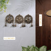 With a compact and balanced design, this brass ganesh lakshmi saraswati wall hanging with bells measures 6 inches in height and 4.2 inches in width. Ideal for pooja rooms, living areas, or entrances, this ganesh lakshmi saraswati brass wall decor creates an auspicious and serene atmosphere.