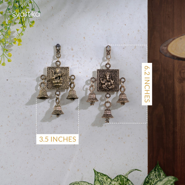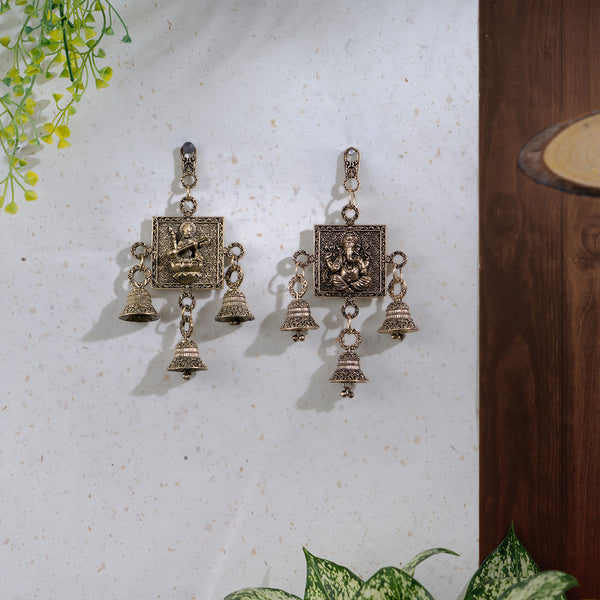 Brass Lakshmi Ganesh Wall Hanging With Bells