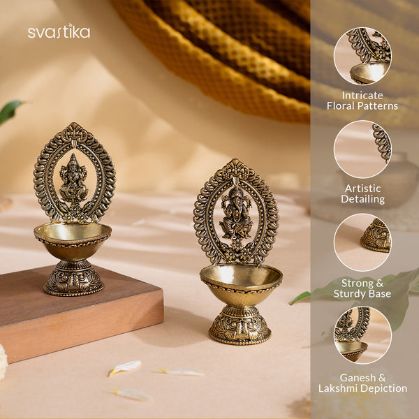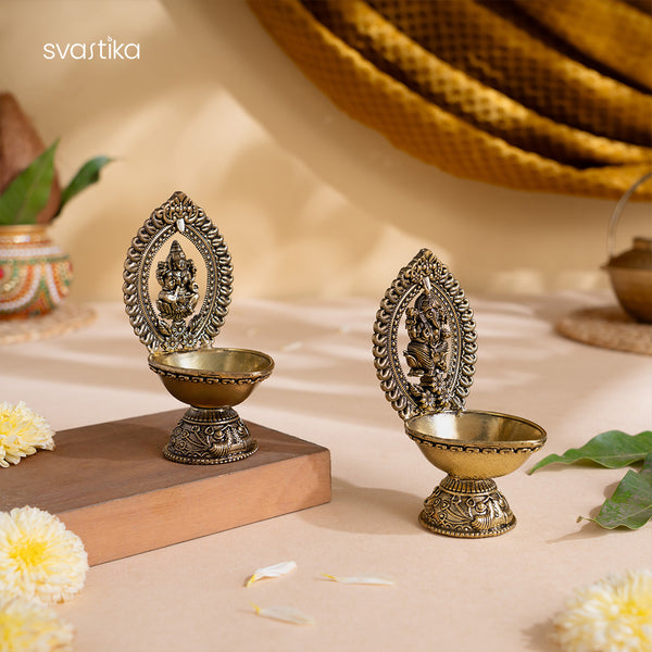 Brass Lakshmi Ganesh Diya Set (4.5 Inch)