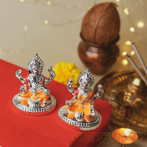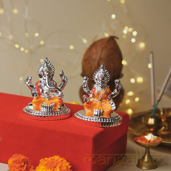 Ganesh Lakshmi Murti Set - Silver Plated (2.7 Inch)