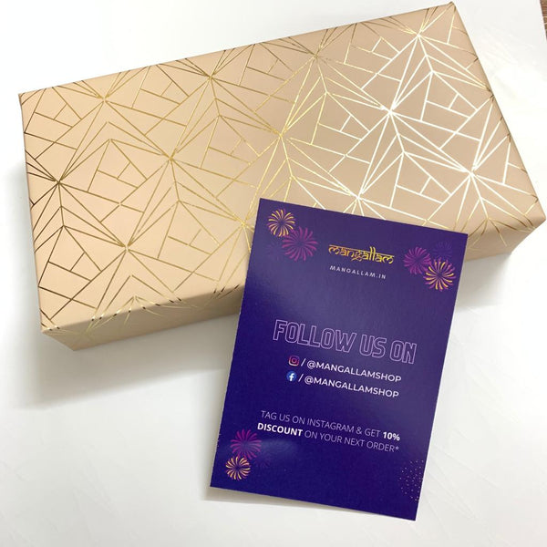 Beautiful Gift wrap with metallic gold color foiling which gives it a very premium look and feel. We also add a card along with it to give your good wishes.