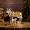 Auspicious Kamdhenu Cow with Calf Idol - Gold and Silver Plated