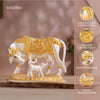 Kamdhenu Cow with Calf Idol: 5 inches (Gold & Silver Plated)