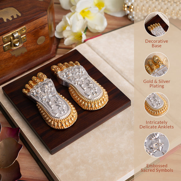 Lakshmi Charan Paduka: Gold & Silver Plated with Elegant Base
