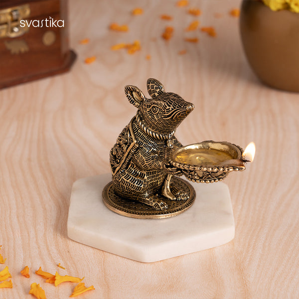 Brass Mushak Diya for Pooja | Antique Aarti Diya (3 Inch)
