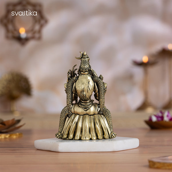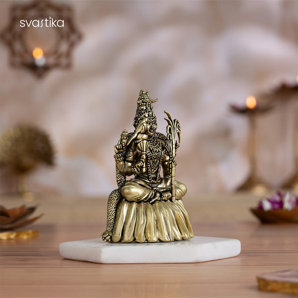 Standing at 4 inches in height and 2.5 inches wide, this compact yet majestic brass idol fits effortlessly into your pooja room, shelf, or desk while still commanding attention with its divine presence.