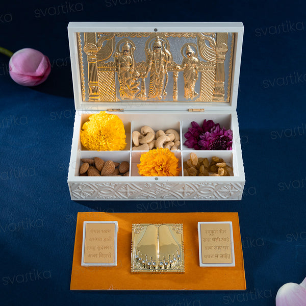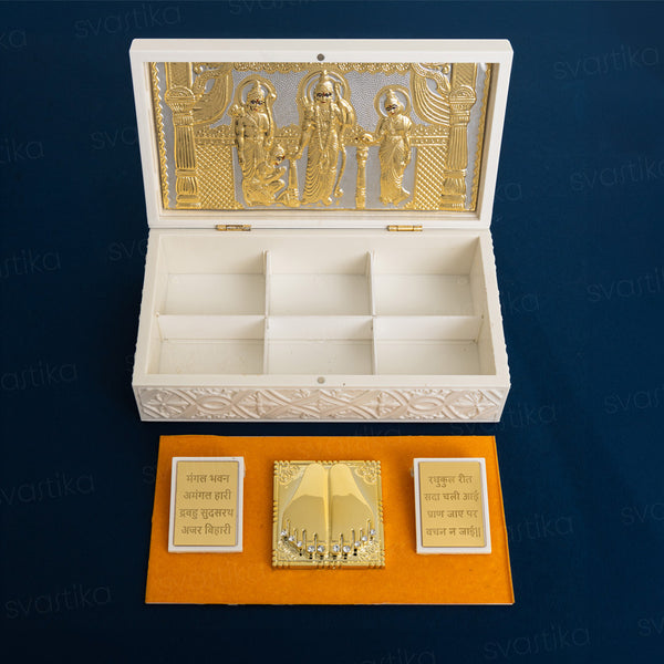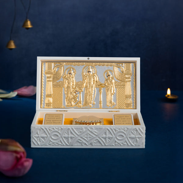 This Ram Darbar Pocket Temple is an auspicious & alluring addition to your altar, locker, pooja room or any religious setting. Makes for a great gift and exchange of good wishes for the festive season!