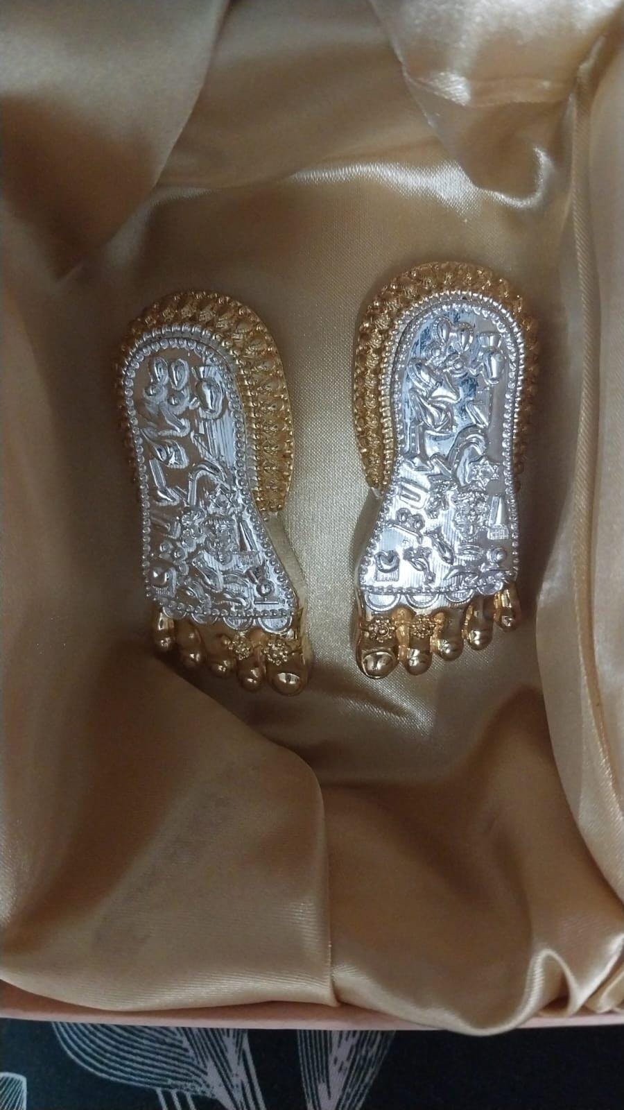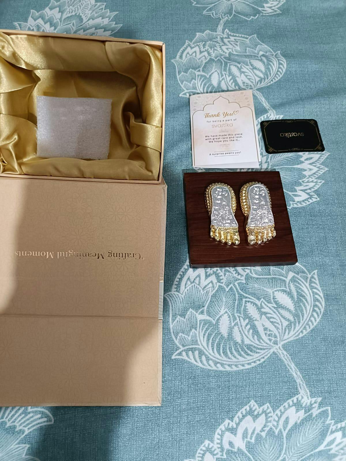 Ideal for festive occasions or as a meaningful return gift during weddings, this laxmi charan paduka is more than an ornament it’s a heartfelt invitation for blessings to flow. Feel the sacred presence of Maa Laxmi feet in your home and let her grace bring you prosperity, joy, and spiritual fulfillment.