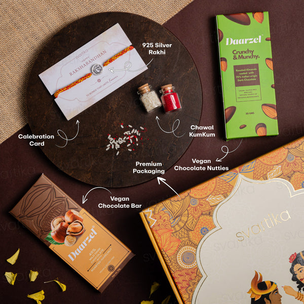 925 Pure Silver Om Ganesha Raksha bandhan Hamper | Rakhi & Chocolates Box