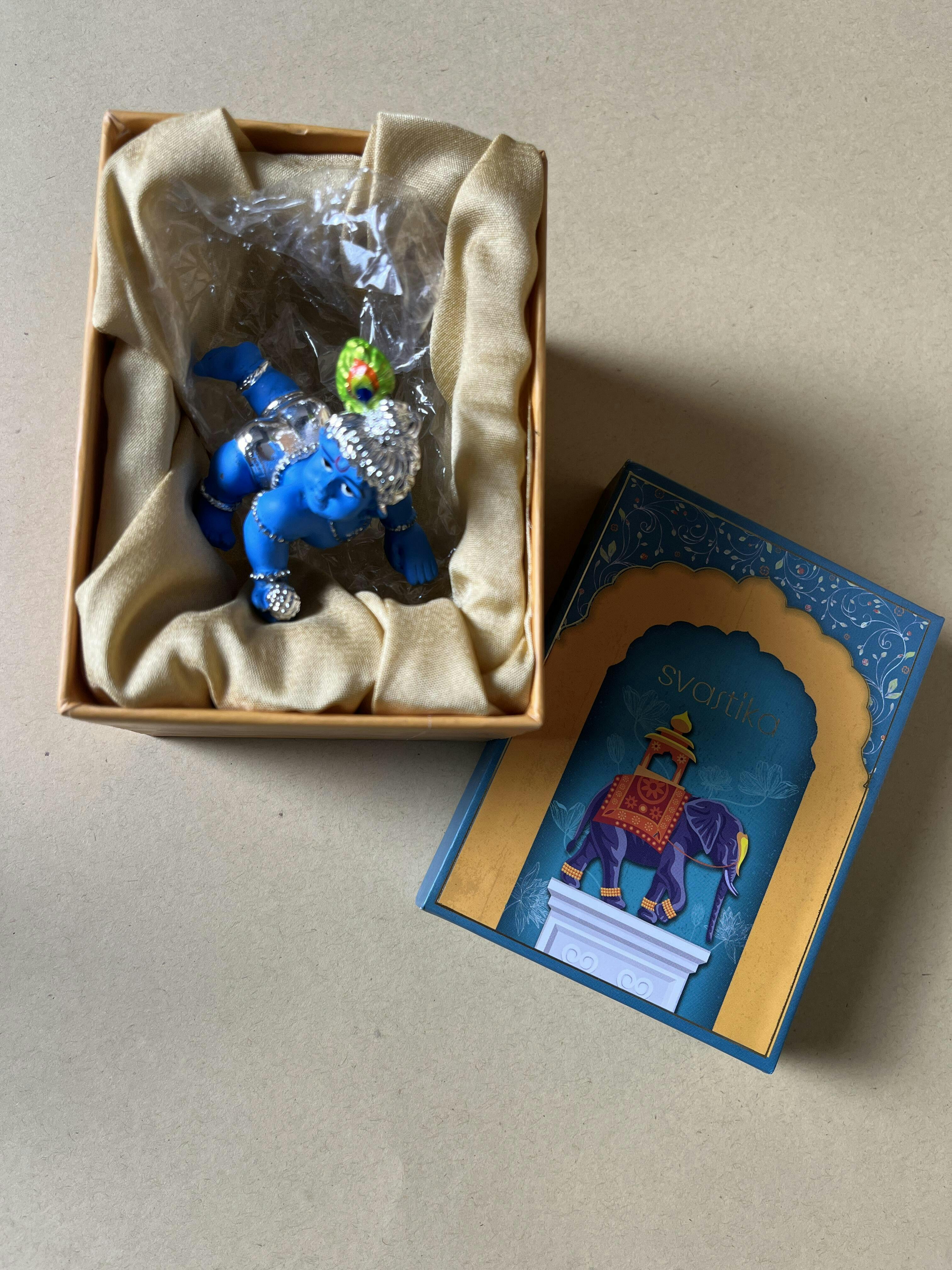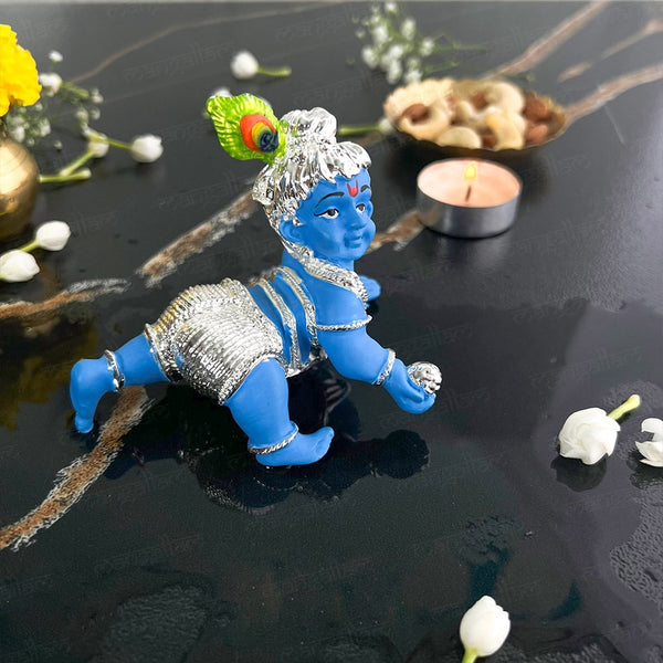 Ideal as a heartfelt gift for Janmashtami or to celebrate the arrival of a newborn, it promises to infuse your sacred space with the divine energy of Krishna's eternal love and childlike charm.