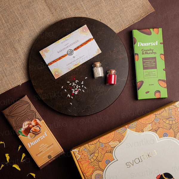 Celebrate this Raksha Bandhan with a rakhi chocolate gift hamper that