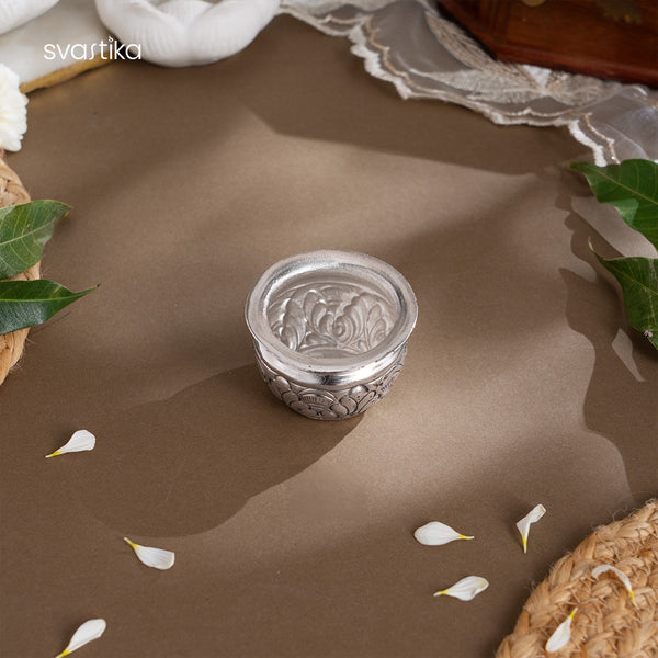 - Silver-Plated Diya: Illuminate your space with this gentle diya flame, symbolizing divine presence and radiant serenity.