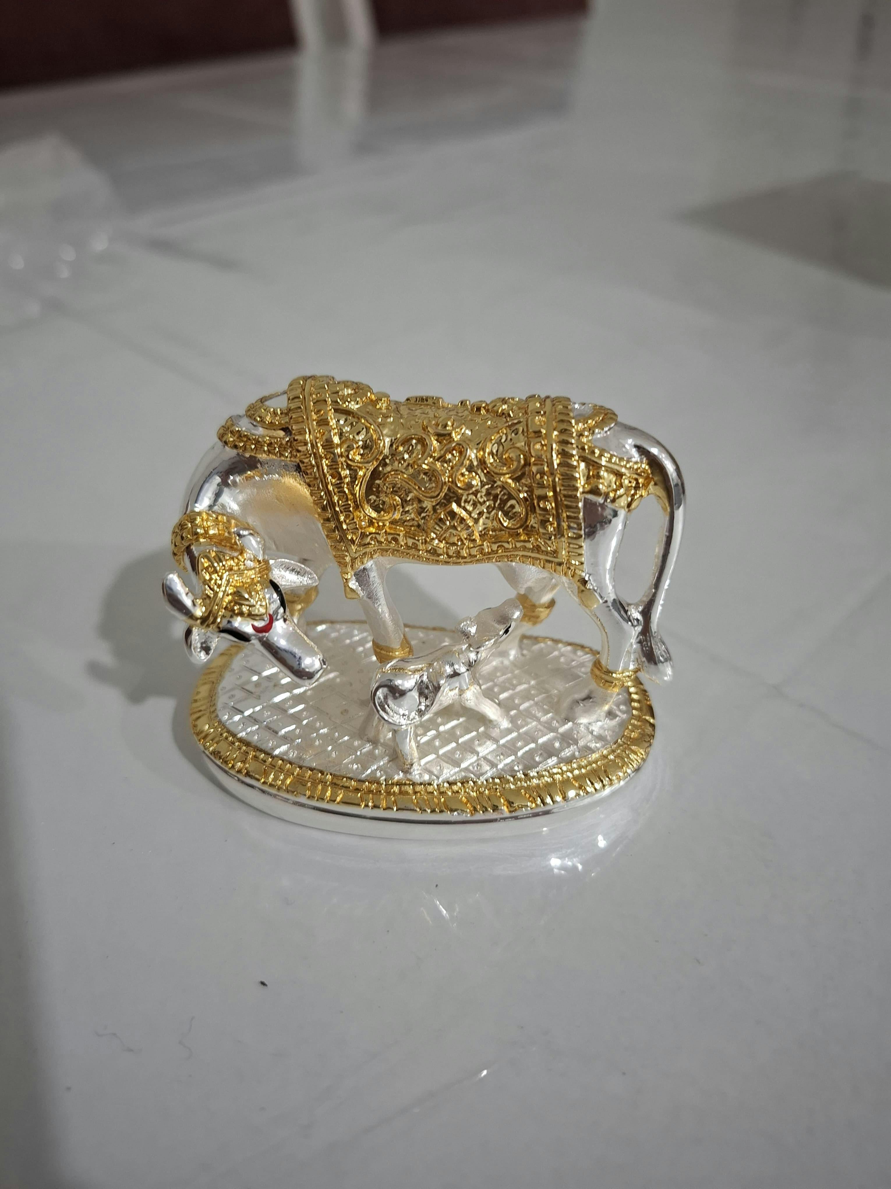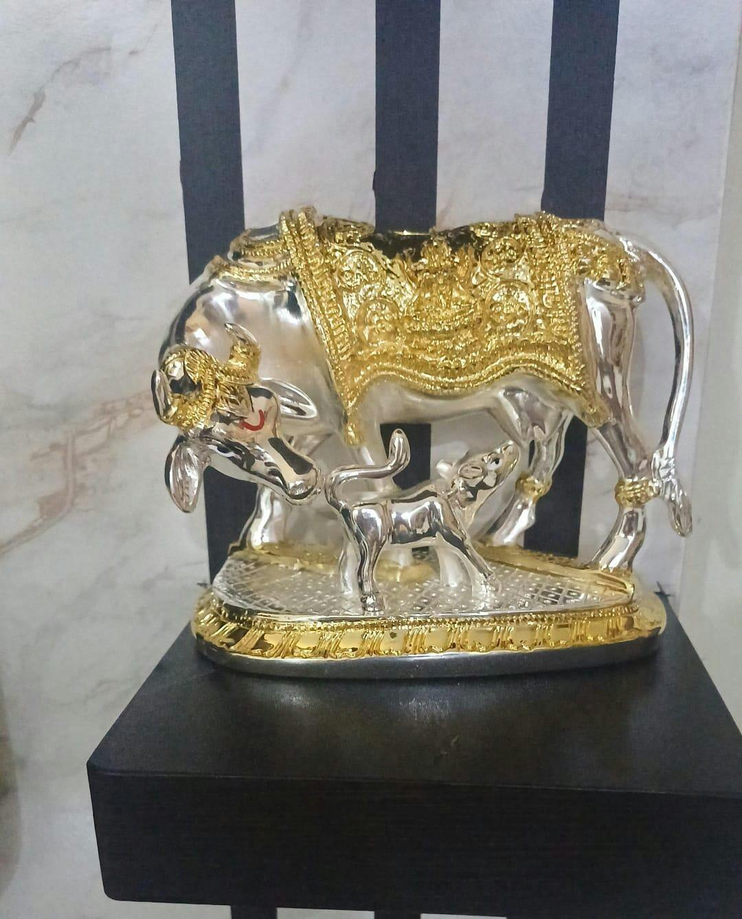 Kamdhenu Cow with Calf Idol - Gold & Silver Plated