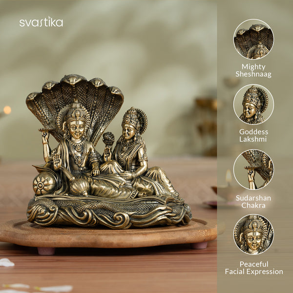It also makes an ideal lord vishnu on Sheshnag and lakshmi pair brass gift for weddings, new beginnings, and auspicious occasions like Diwali and Akshaya Tritiya.