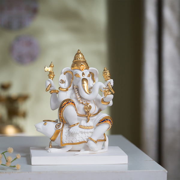 Premium White & Gold Lord Ganesh With Mushak